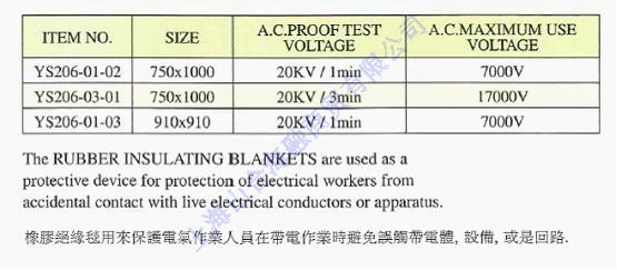 YS206-03-01橡胶绝缘毯(日制)